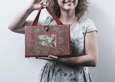 Erzeugung von Taschen aus alten Büchern in Verwendung mit Krawatten. Es kommen zu 98% gebrauchte Materielien zum Einsatz. Außerdem gibt’s Röcke, Täschchen und Schmuck aus Krawatten.