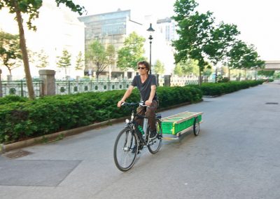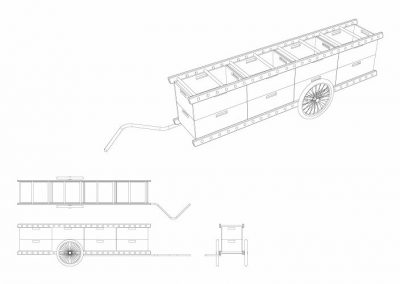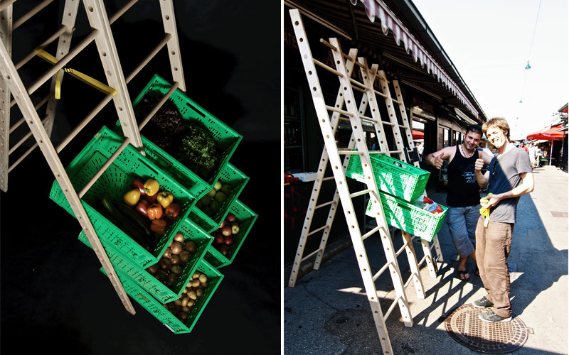Kleinräumlicher Transport von Obst und Gemüse sowie die Stärkung sozialer und gemeinschaftlicher Komponenten von Foodcoops sind das Anliegen der „Sprosse“. Einfachheit und simple Reproduzierbarkeit des Leiterwagens als Radanhänger, der gleichzeitig in einen Marktstand umgebaut werden kann, sind die funktionellen Anwendbarkeit des Projekts, das optimal auf die Bedürfnisse von Ausstellung der gerade geernteten oder von regionalen Bauern bezogenen Lebensmittel und den DIY- Gedanken eingeht und auf unkomplizierte weise versucht, das Konzept von Lebensmittelkooperativen und dessen Nachhaltigkeitscharakter wiederzugeben.