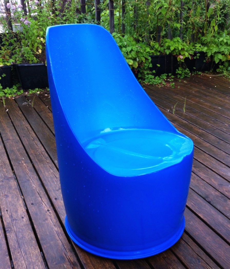 Aus alten Kunststofffässern werden gemütliche Sitzgelegenheiten gefönt und geschnitzt.